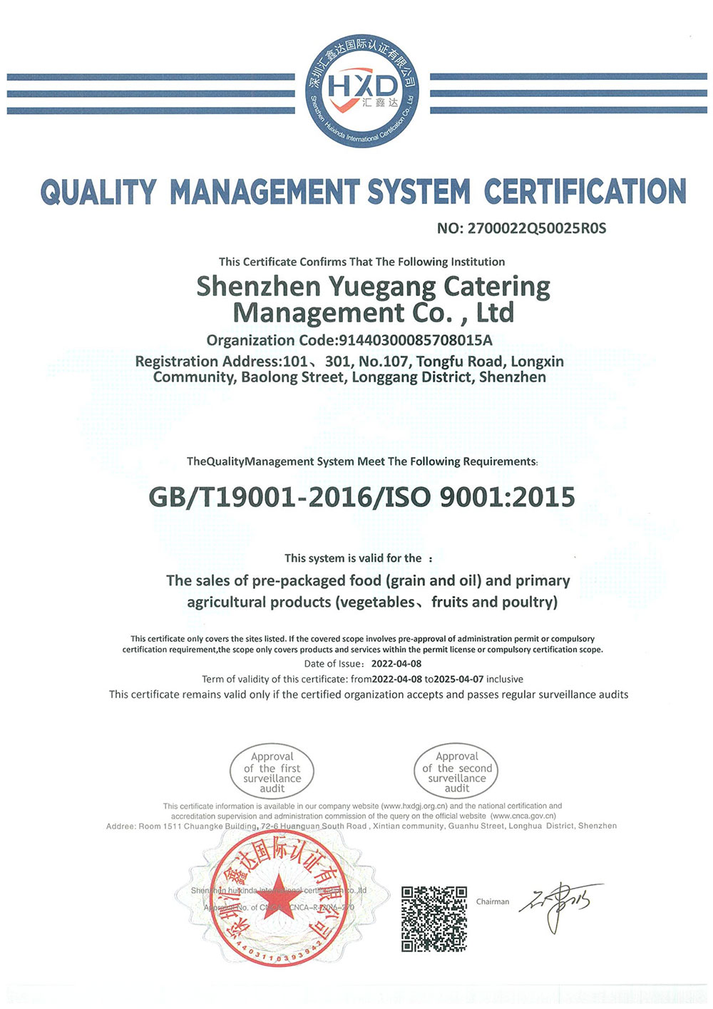 深圳市粵崗餐飲管理有限公司,是一家集蔬菜種植和農(nóng)副產(chǎn)品配送為一體的專業(yè)型餐飲公司,主要為學(xué)校、工廠企事業(yè)機(jī)關(guān)單位提供蔬菜和農(nóng)副產(chǎn)品配送服務(wù)。公司自成立以來始終以質(zhì)優(yōu)價廉、服務(wù)至上為原則,嚴(yán)格按照ISO:9001國際標(biāo)準(zhǔn)體系進(jìn)行管理。同時建立了行業(yè)領(lǐng)先的配送中心、大型冷庫和保鮮庫、檢測中心以及專業(yè)化的配送團(tuán)隊,能長期安全、穩(wěn)定、準(zhǔn)時的配送貨物。我們所有蔬菜均經(jīng)過初步加工、無黃葉,無泥沙等雜質(zhì),利用率達(dá)97%以上...保障向用戶提供的各類食材的衛(wèi)生和質(zhì)量。公司為了適應(yīng)不同客戶的需求,配有專業(yè)人員和配送車輛,實行“一對一”的服務(wù)體制,一心一意的為客戶服務(wù),秉承粵崗誠實守信、服務(wù)第一、客戶至上的服務(wù)標(biāo)準(zhǔn),真正讓客戶花最少的錢吃最好的菜。粵崗多年來何以欣欣向榮,因為我們知道只有勇于擔(dān)當(dāng)責(zé)任,才能承擔(dān)更大的責(zé)任,就是因為 粵崗員工貫徹公司態(tài)度決定一切、細(xì)節(jié)決定成敗的真理,從質(zhì)量抓起,從服務(wù)做起,才創(chuàng)造了如今的規(guī)模化供應(yīng)、統(tǒng)一性配送、專業(yè)化服務(wù)的粵崗。